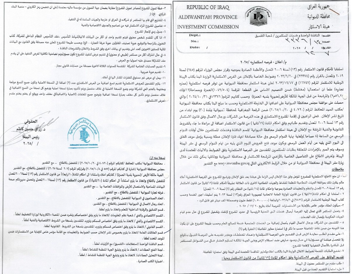 هيئة استثمار الديوانية .... مجمع جبل عامل